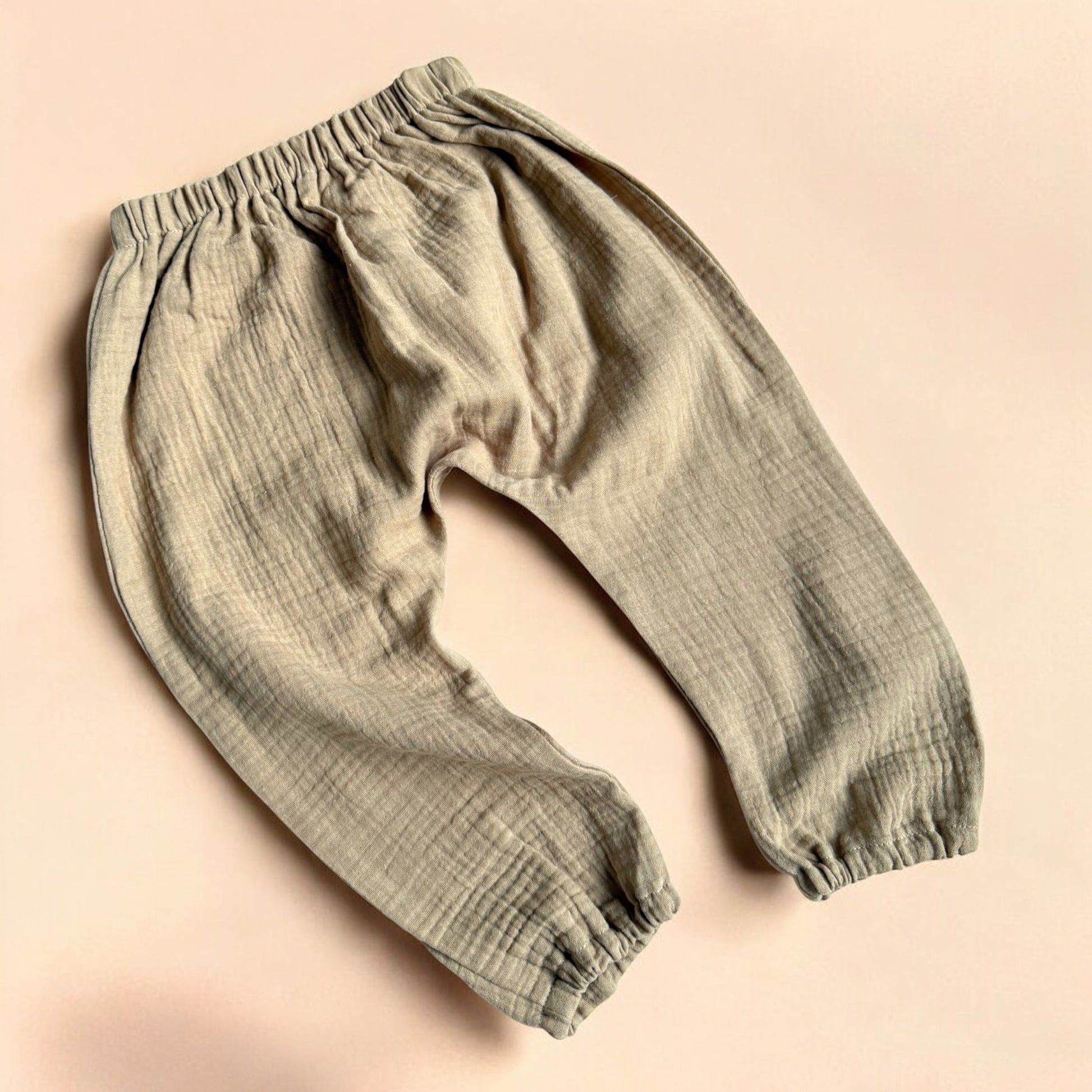 Rennon letkeät haaremi-malliset harsohousut ommellaan kevyestä harsokankaasta. Haaremihousut ovat mukavat ja kevyet – täydelliset kesän lämpöön. Rento istuvuus, pehmeät kuminauhat ja hengittävä kangas tekevät housuista arjen suosikin.
